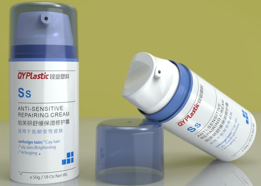 حاوية بلاستيكية أسطوانية بدون هواء 30 مل 50 مل زرقاء لون الوجه مصل PP زجاجات التجميل